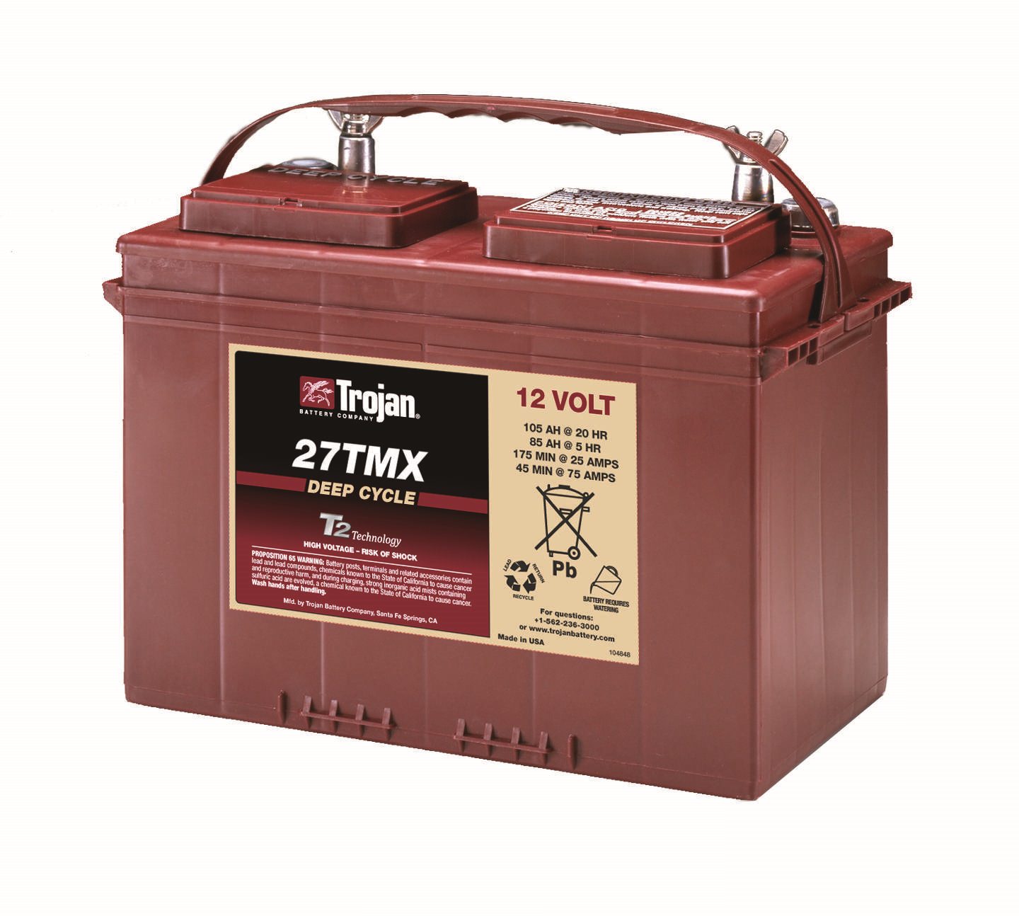 Тяговая аккумуляторная батарея Trojan 27TMX – это высококачественный источник энергии, специально разработанный для обеспечения надежной и длительной работы электротранспорта, прогулочных тележек, электрических внедорожников, систем запасного питания и других устройств, требующих стабильного и мощного электропитания. Эта аккумуляторная батарея сочетает в себе передовые технологии производства, надежность и удобство эксплуатации.